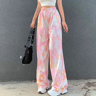 扎染抽绳束脚宽松百搭直筒休闲裤潮